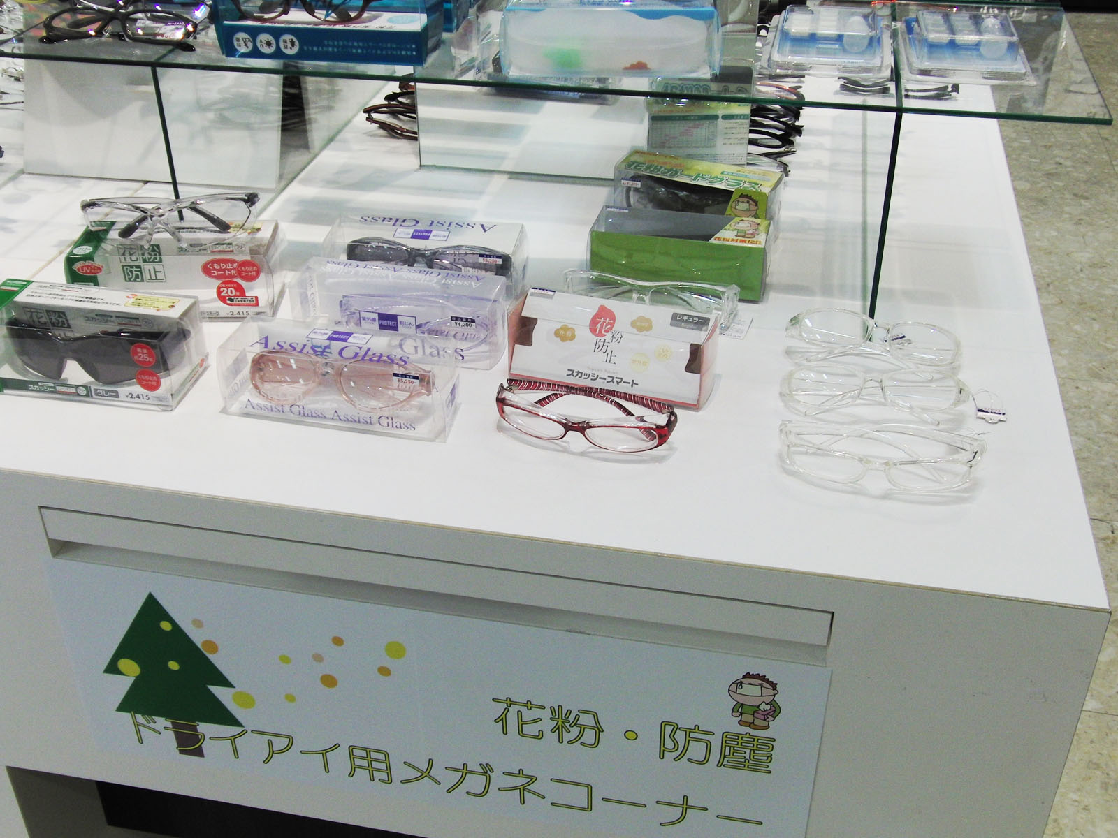 今日は以前から注文していた花粉用メガネが入荷したのでさっそくコーナーを作って陳列しましたよ!