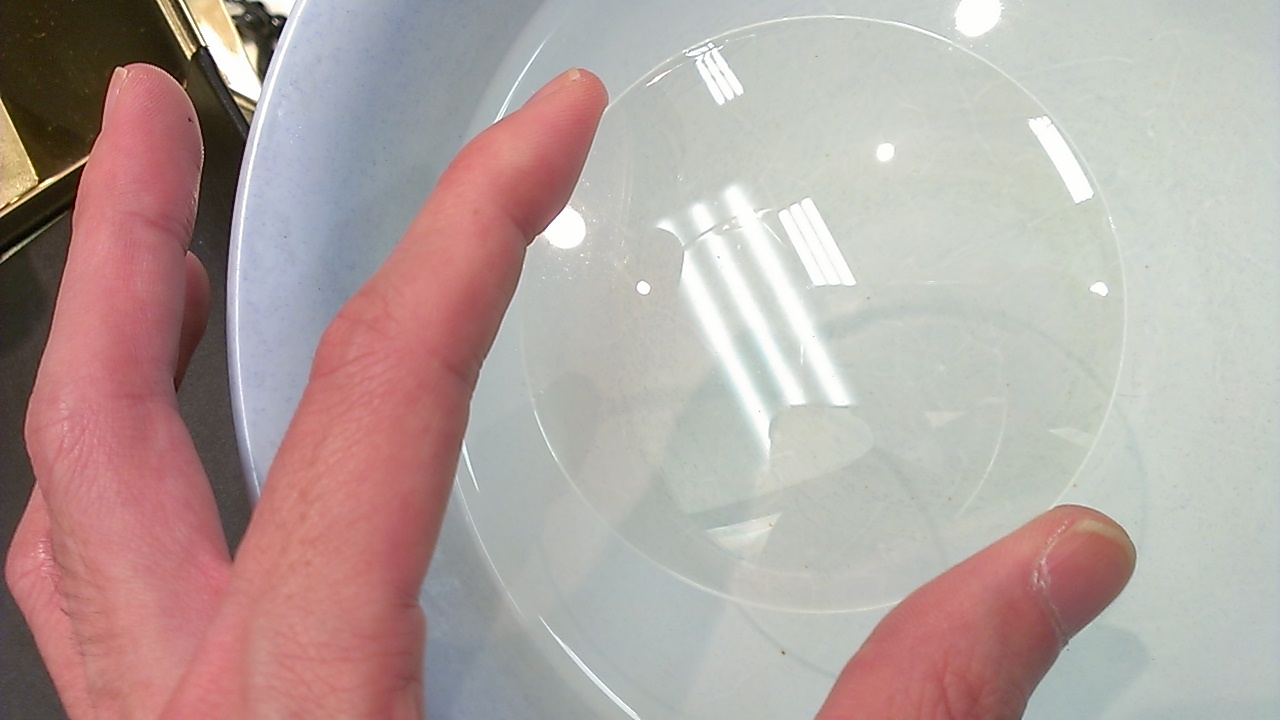 このレンズが花粉用ゴーグルにつけられれば一番活躍するんじゃないかな、ゴーグルについた花粉を水で洗い流す度に曇り止めを塗らないといけないのがクモランなら水で洗い流すだけで済みますからね