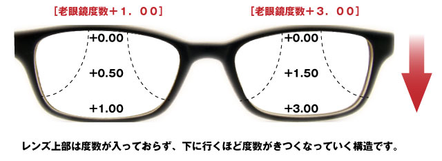 こうすることで奥行きのある視界になるので老眼鏡でよく言われる「近くを見てる時はいいけどはずすと頭がくらくらする」とか「不意に顔をあげるとしんどい」とかゆう状況を防ぐ事が出来ます