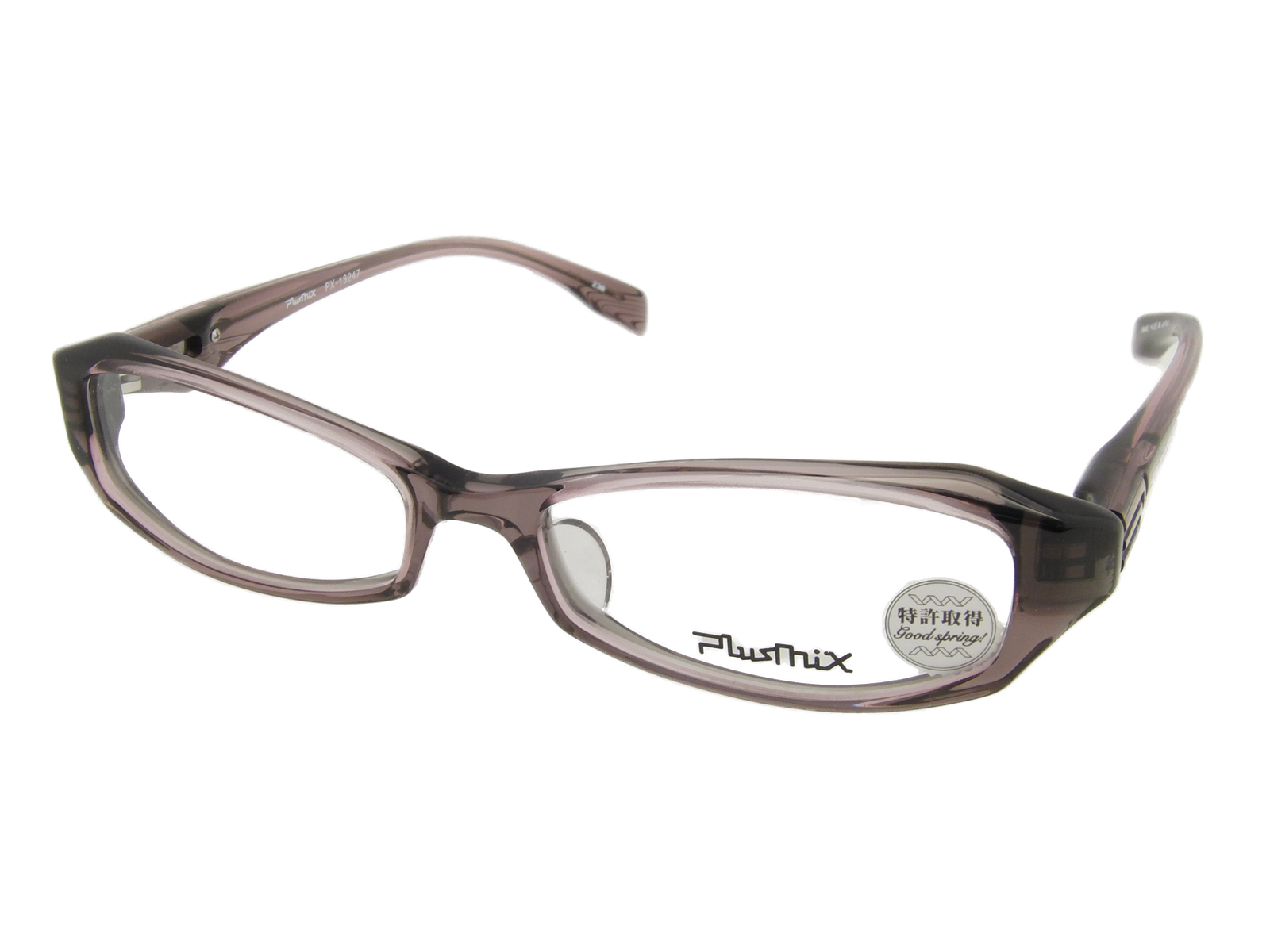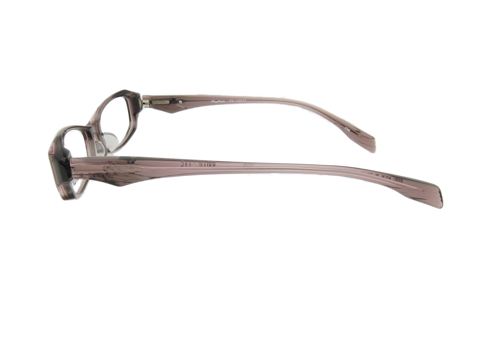 クリアーなグレーパープル系のフレームで見た感じが重くないカジュアルな印象です
