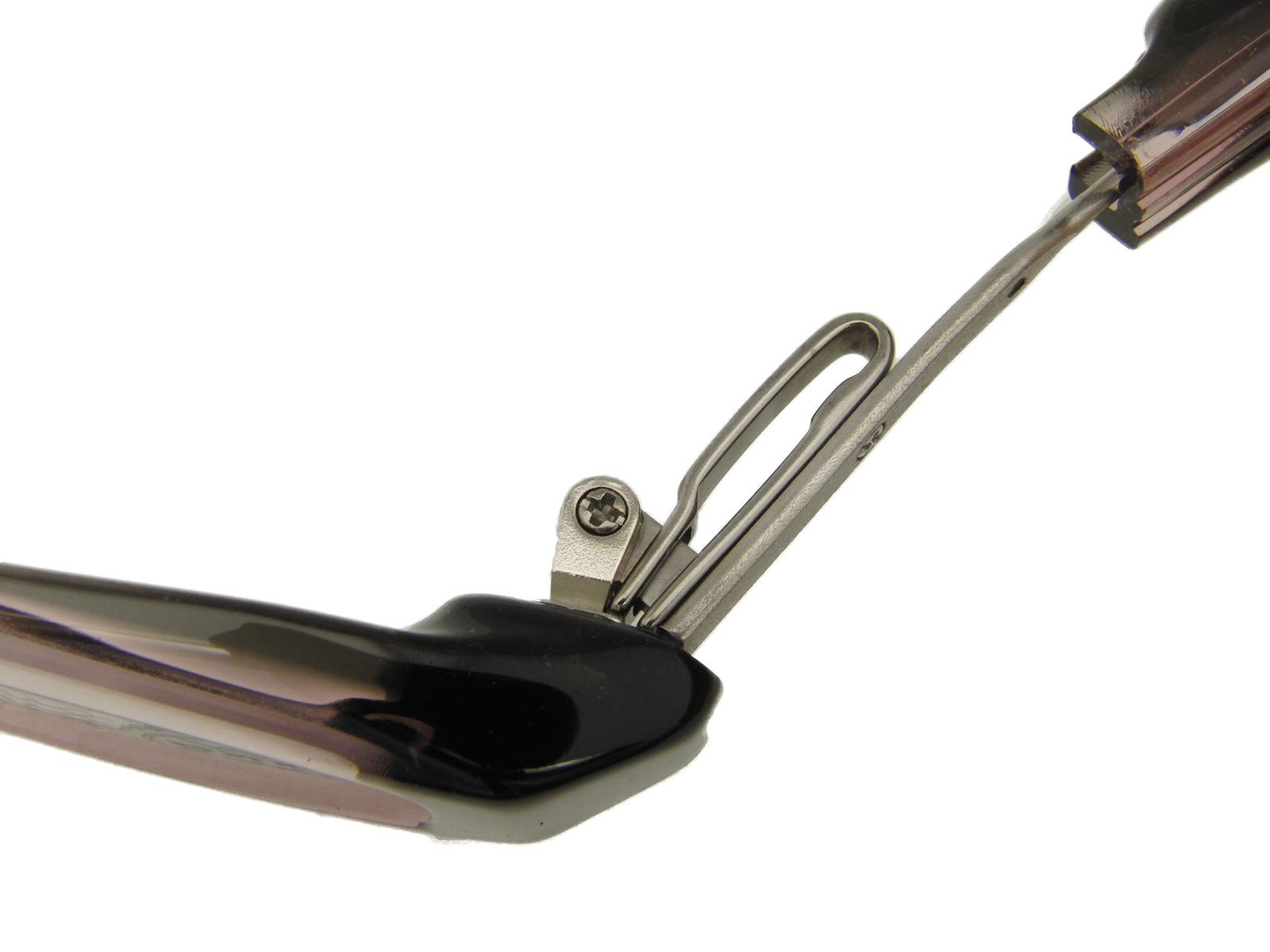 普通はこんな風に直角なんですが、この切り込みのおかげでテンプルの高さが調節しやすいんですよ