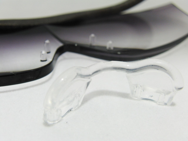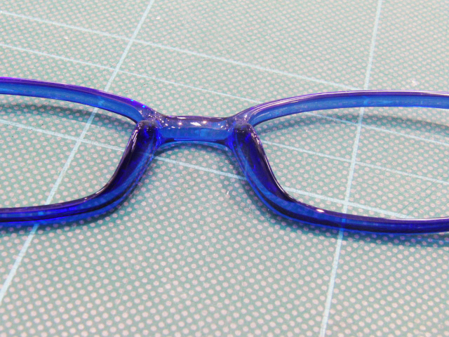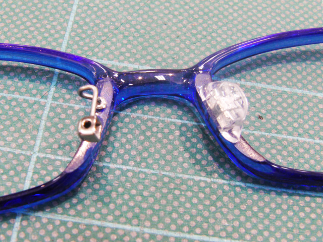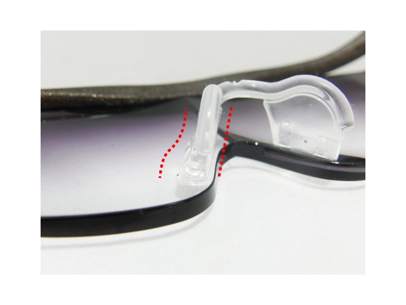 TR-90が出たてのころはレンズを入れる時にフレームが割れるとゆう話をチラホラ聞いたので⇒セルフレームより弱い・割れやすい⇒しかも接着剤がはじかれる⇒だから鼻パット後付けは無理と結論づけていました