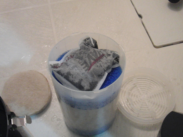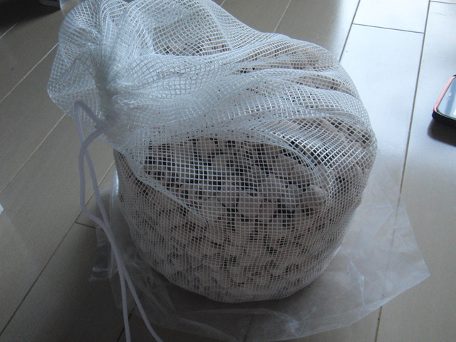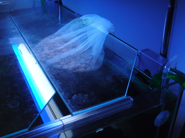 急にろ過材を入れ替えるとよくないようなのでとりあえず一緒に購入したネットに入れて一週間程水槽に浸しておきました。