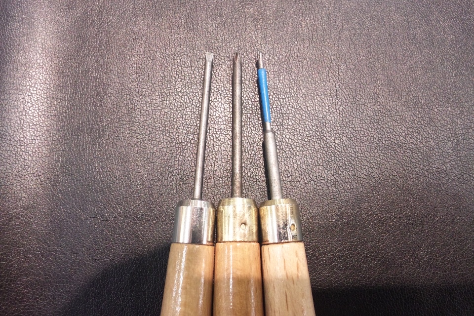 とりあえず一本だけ選ぶとしたら写真右端の先が細くなっているドライバーが細かいところにも入りやすく使いやすいです(青色の巻いてあるのは作業中フレームにキズが行かないようにするためのものです)