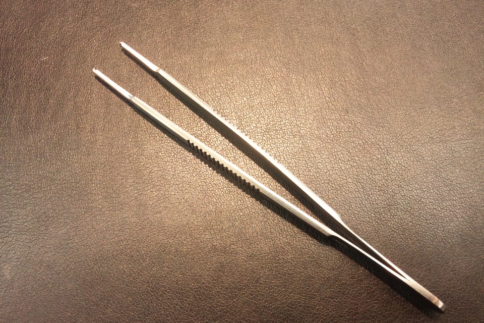 このピンセットは眼鏡用に先の部分にネジをしっかり持てるようT字のくぼみがありますが普通のピンセットでもOK