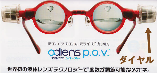 最近ちまたで話題のアドレンズ、度数調整のできる眼鏡で2年ぐらい前に「もうすぐ実用化」って記事を見た覚えがあります、当時は発展途上国などに安価に供給する目的で開発されてたような気がします。