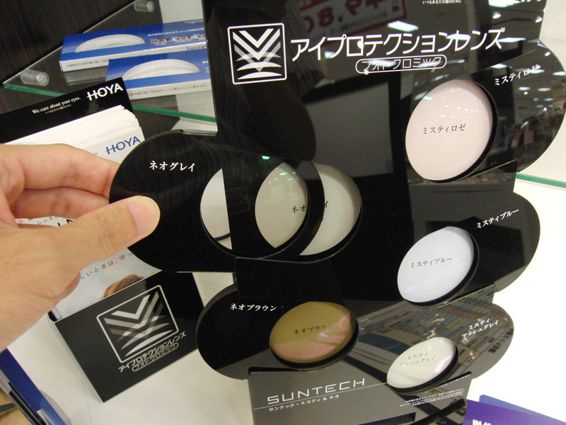 一応、HOYAさん専用の調光レンズと最近CMでやってるトランジションズの調光レンズとあるので一通り試せます