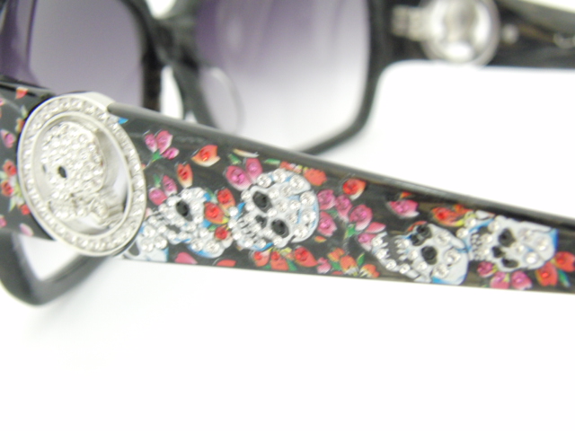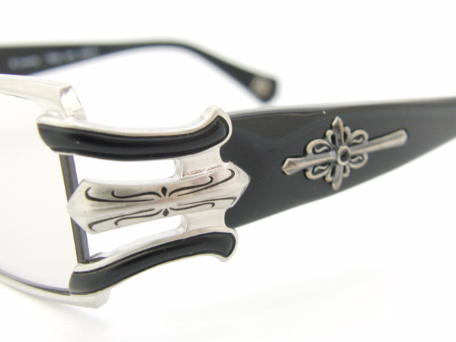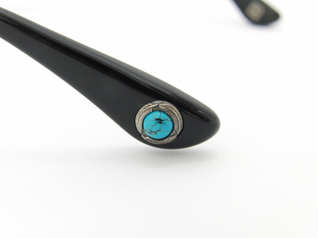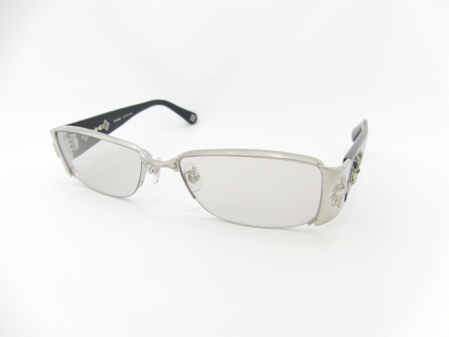 横のテンプルにシルバーの飾りのついたサングラス(メガネ)で度付も可能ですがその時は度数とレンズの種類と店員さんと要相談です。