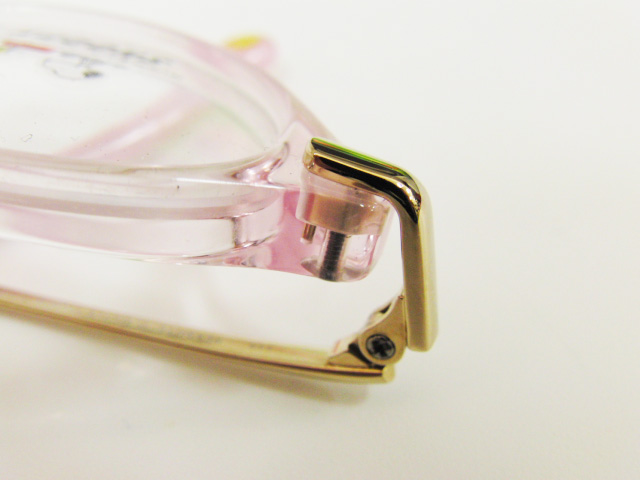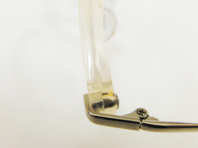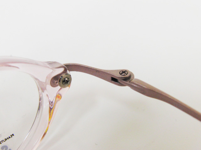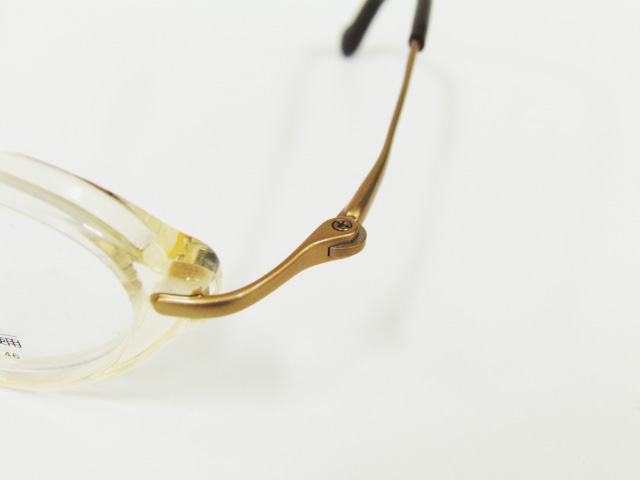 このフレームの特徴の一つとしてフロント部分とテンプル部分がネジ止めされています、これにより顔幅と耳までの長さに応じて付け替えることで最適な長さをチョイスすることができます。