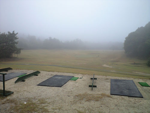 滋賀のほうにある近江カントリーってとこなんですけどごらんのとおり霧でまったく見えません!