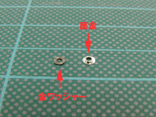 こんなやつです、ちなみに左がツーポイントフレームの時に使う普通の金属ワッシャーで右が座金です。