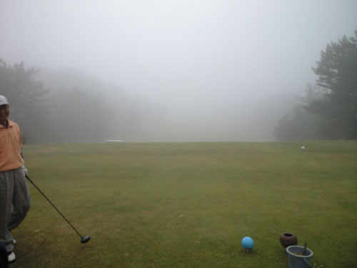 滋賀のほうにある近江カントリーってとこなんですけどごらんのとおり霧でまったく見えません!